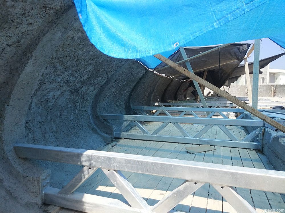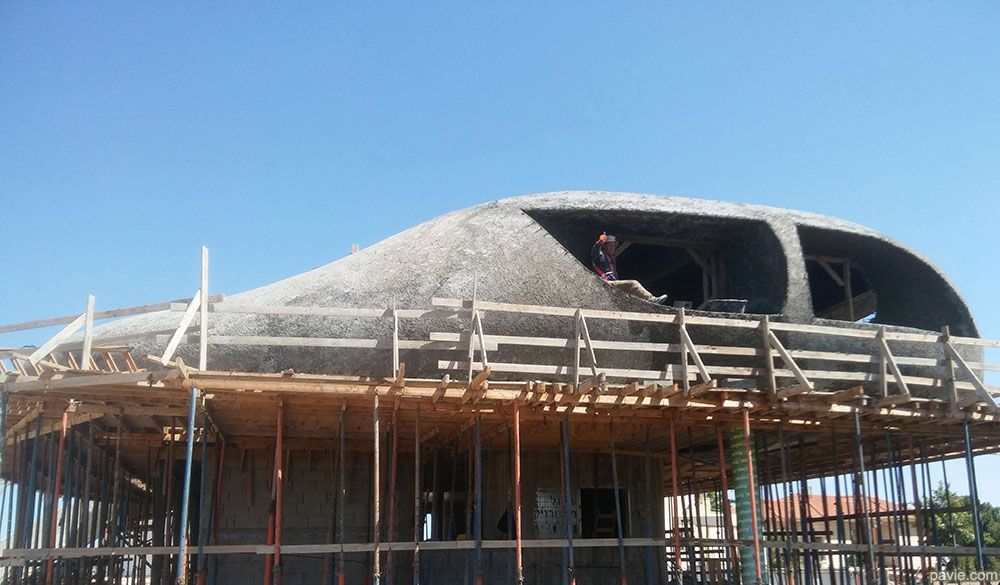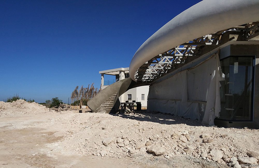 Built on a hill, facing spectacular view, exposed to strong winds and sun.